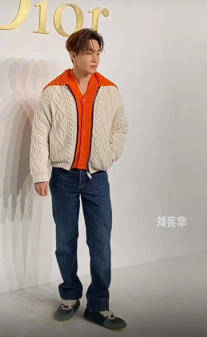 刘宪华这一套有点过于休闲了,比较适合做私服,针织外套搭配蓝色牛仔裤,像是逛着街被拉来走红毯似的。