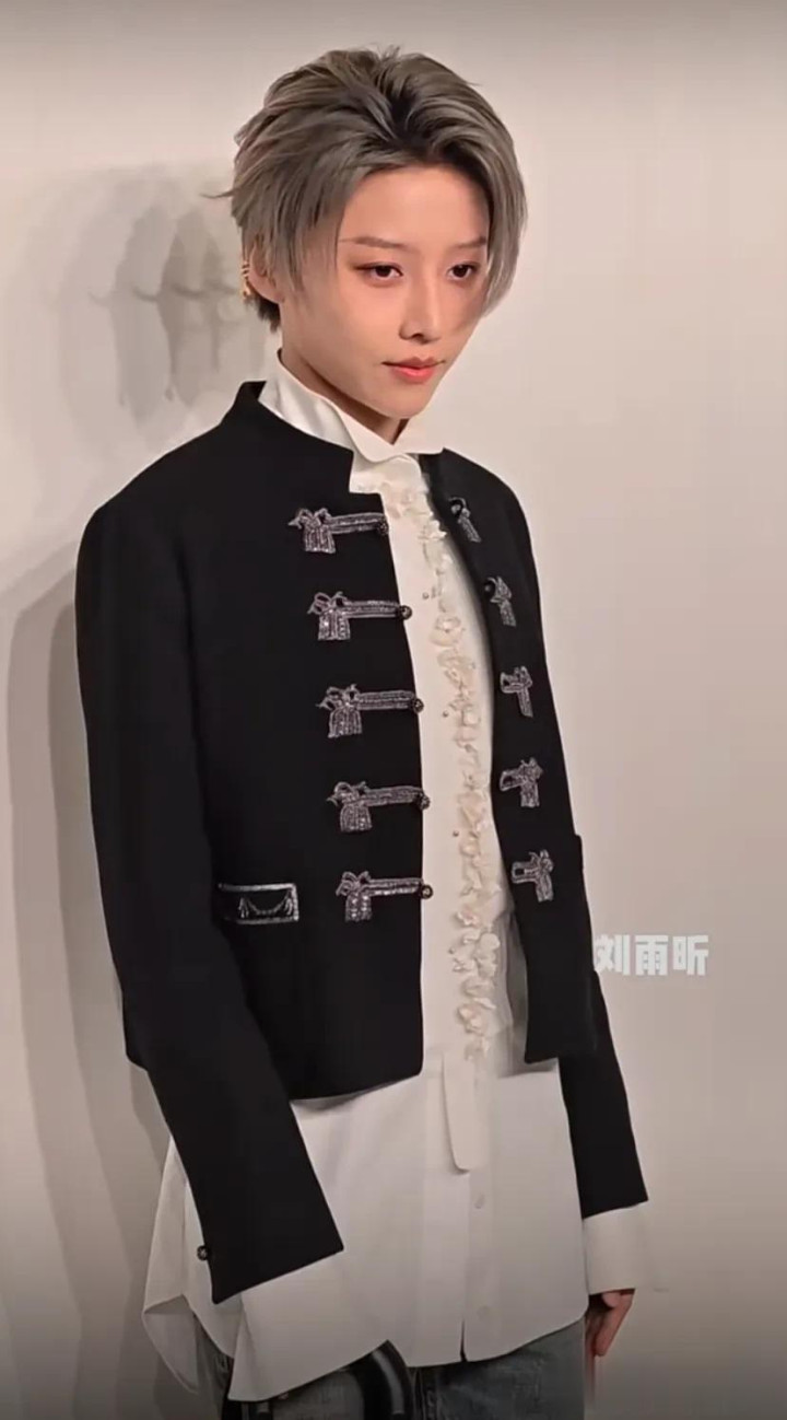刘雨昕这身穿搭真的又酷又飒,不仅斩女还斩男,黑色短款外套搭配白色长衬衫,下半身的浅蓝色牛仔裤也很适配,这种风格也很适合她。